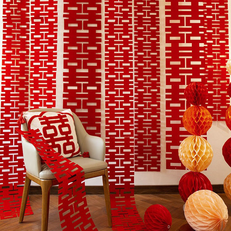 六联喜字拉花长条喜字婚房布置贴挂饰结婚装饰创意喜字背景墙晨