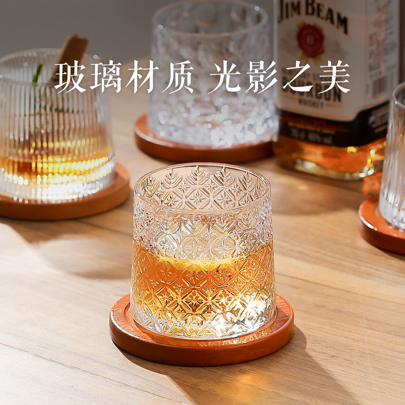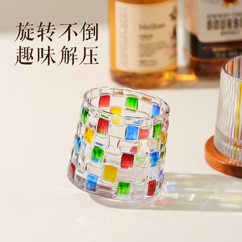 川岛屋威士忌酒杯高级感洋酒杯家用旋转不倒翁玻璃啤酒杯子高颜值