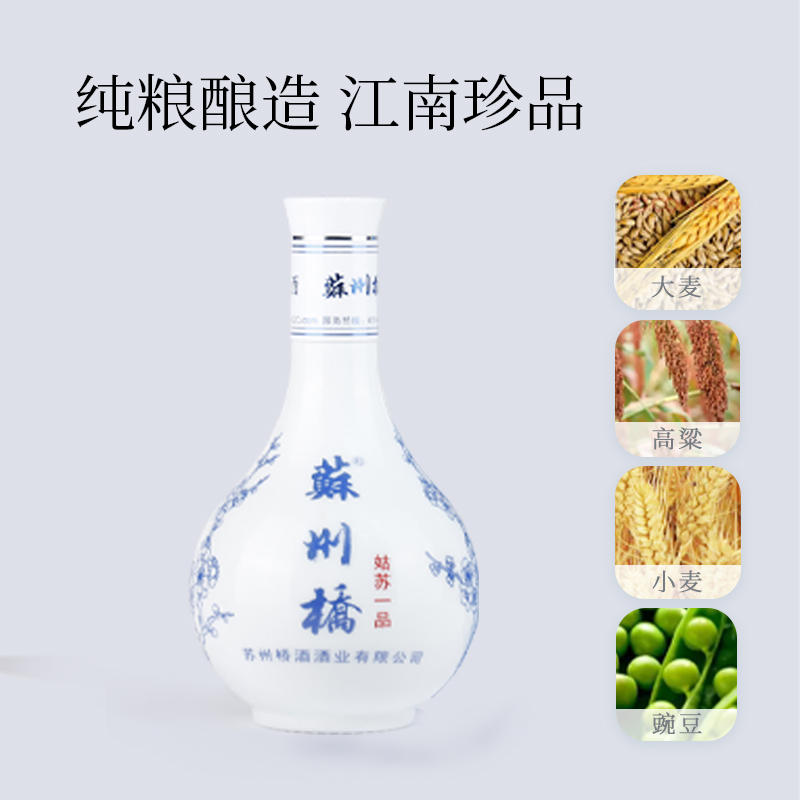 苏州桥白酒姑苏一品姑六42度浓香型苏州特产整箱有双瓶礼袋