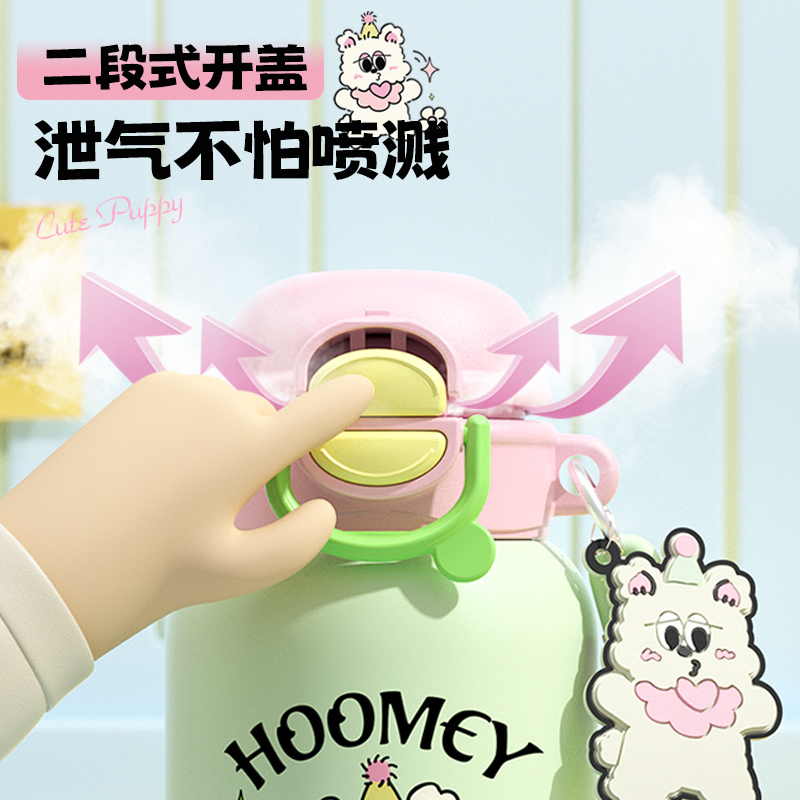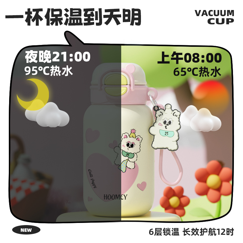 hoomey保温杯女生2025新款高颜值可爱学生专用杯子吸管儿童水杯