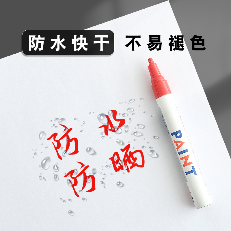 红色油漆记号笔防水不易掉色油性防晒工业金属标记细头轮胎笔描胎汽车专用油漆笔涂鸦笔画鞋用的笔粗头补漆笔