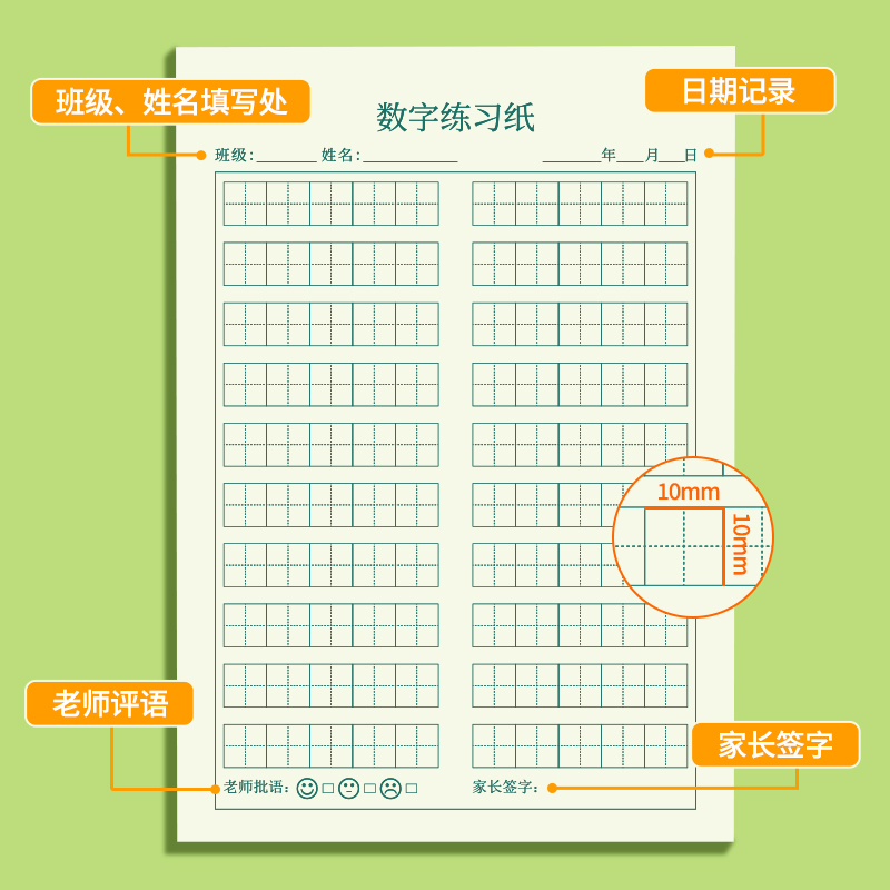 维克多利32k数字练习纸加厚小学生幼儿园初学者专用数字练习规范书写一年级二年级大格写0-99数字纸