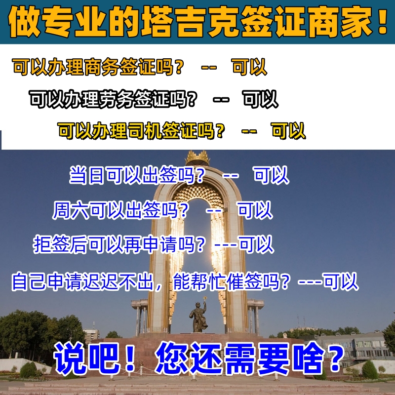 塔吉克斯坦·旅游签证·移民局网站·电子签可【特急当日出签】【拒签全退】【在第三国可办】旅游商务劳务都