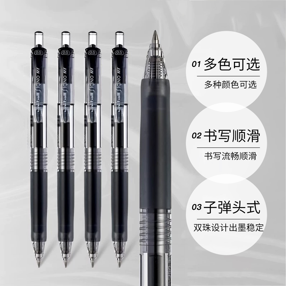 【自营】uni三菱UMN105/138按动中性笔黑红蓝色0.5/0.38中性笔学生用速干黑色水笔大容量学生专用笔可换笔芯