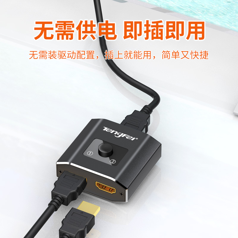 腾飞HDMI切换器二进一出一分二高清线双向分配器一进二出转换器分屏器一拖二2进1出电视接口转接器显示分线器