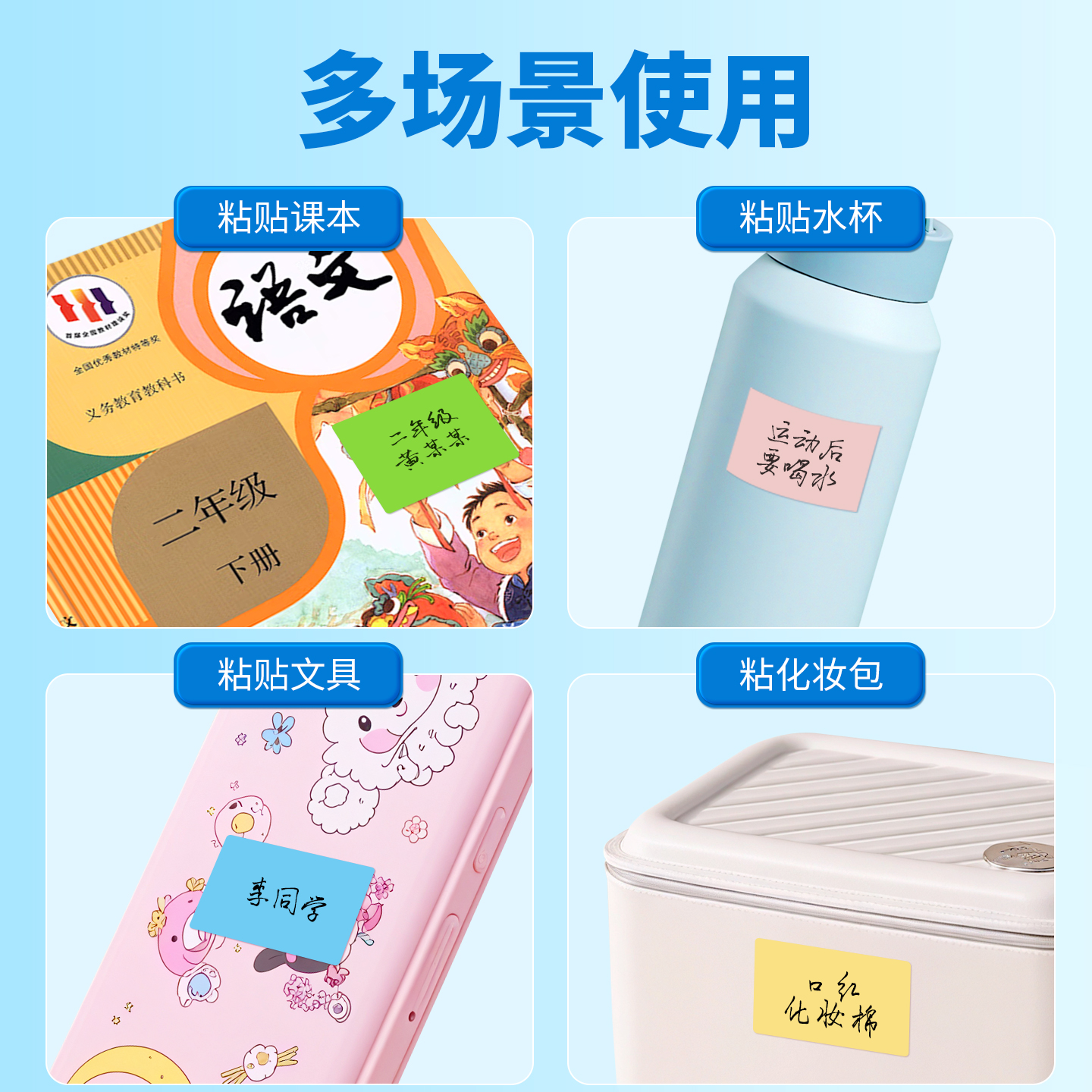 彩色防水易撕不留胶标签贴纸自粘贴可撕不干胶防油手写字姓名贴便利贴冰箱食物时间食品记号分类便签纸标签贴