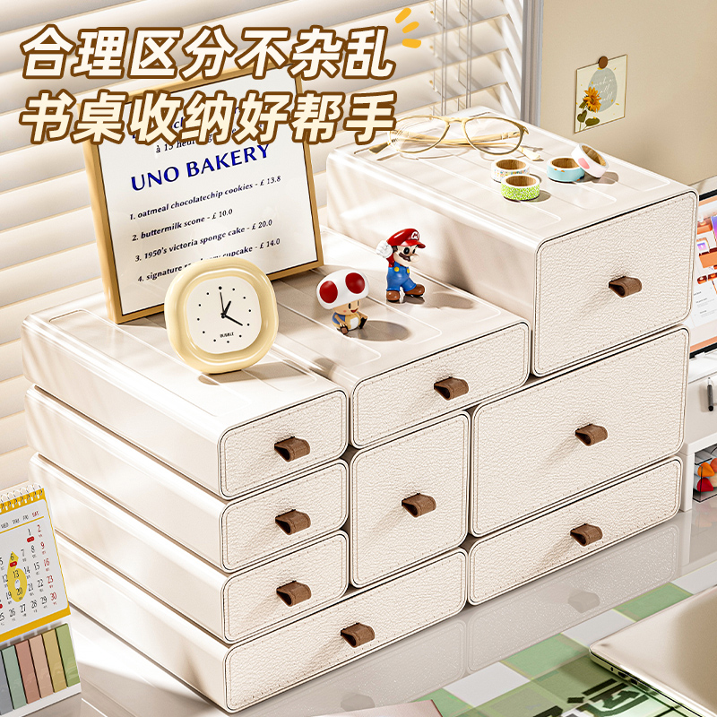 桌面收纳盒抽屉式办公文具整理办公室置物架抽拉长方形分类大容量