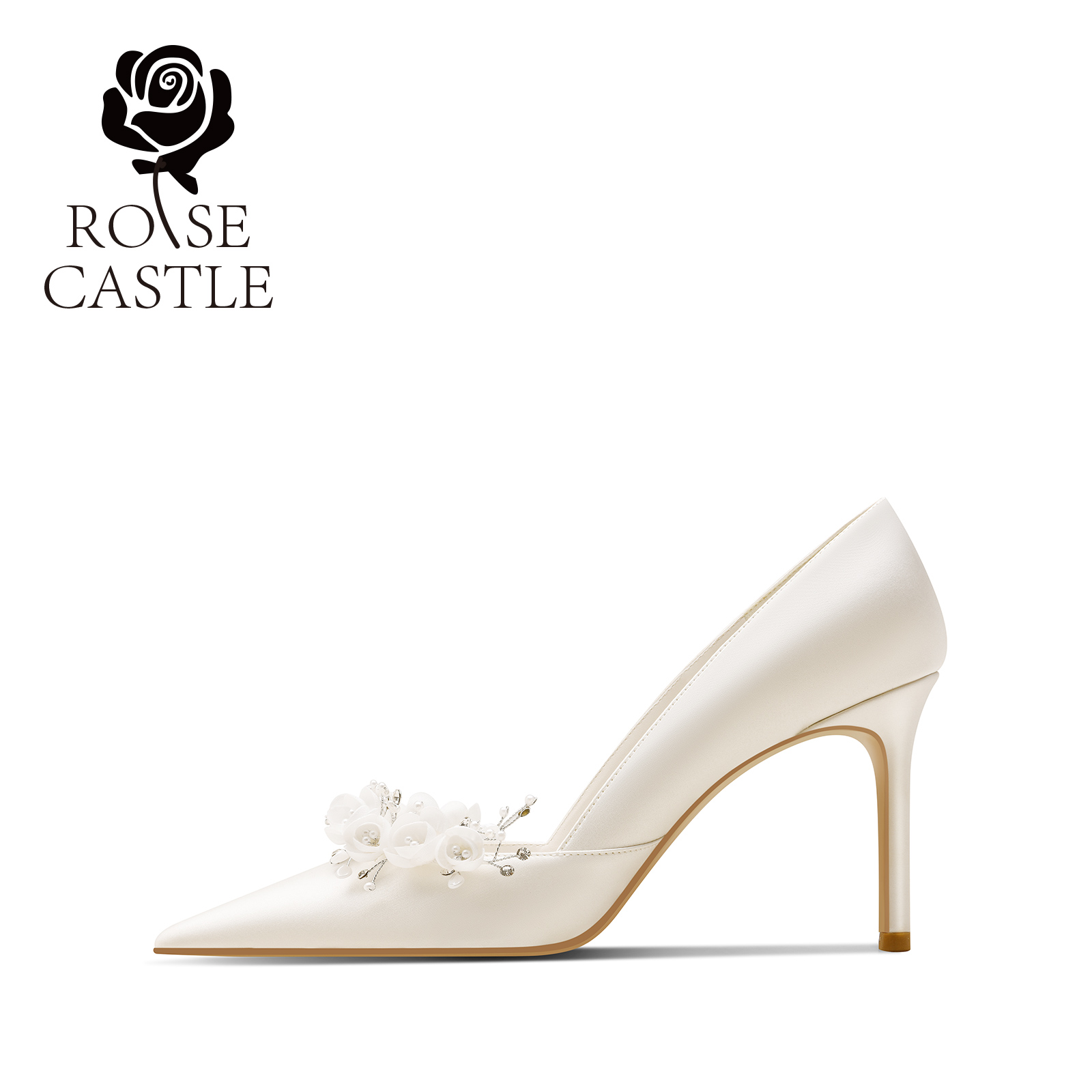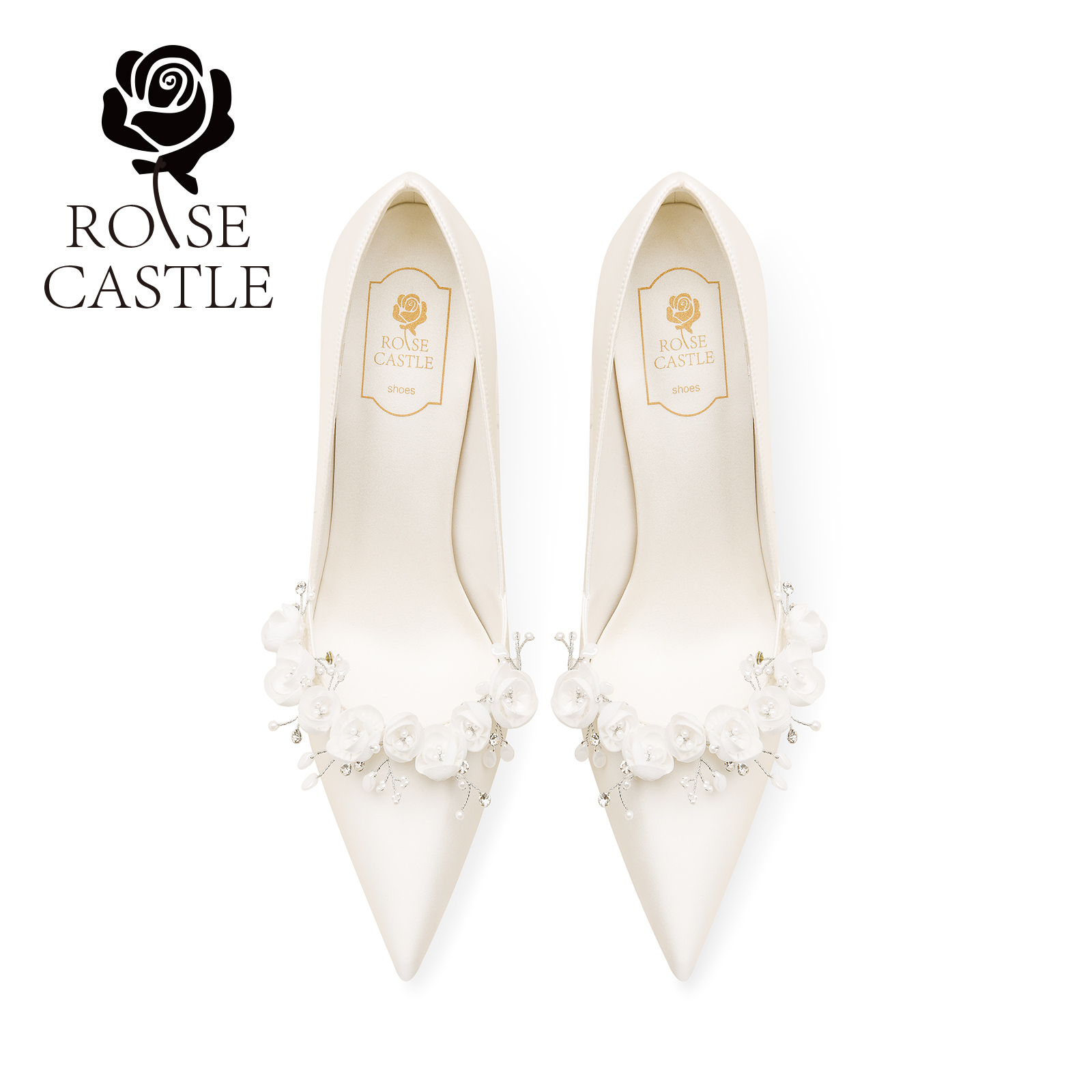 rosecastle秘密花语白色法式婚鞋女日常婚礼两穿不累脚细跟高跟鞋