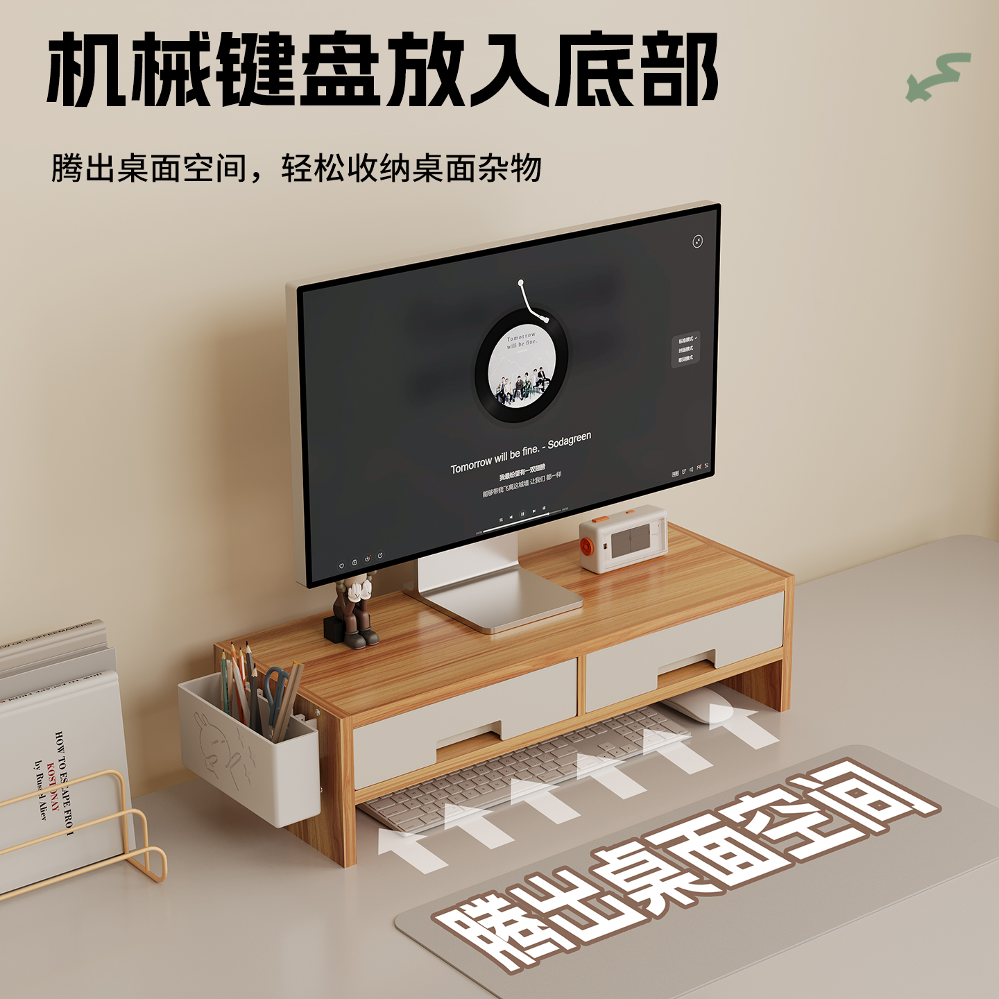 电脑显示器增高架抽屉式多功能整理架笔记本垫高支架办公收纳整理