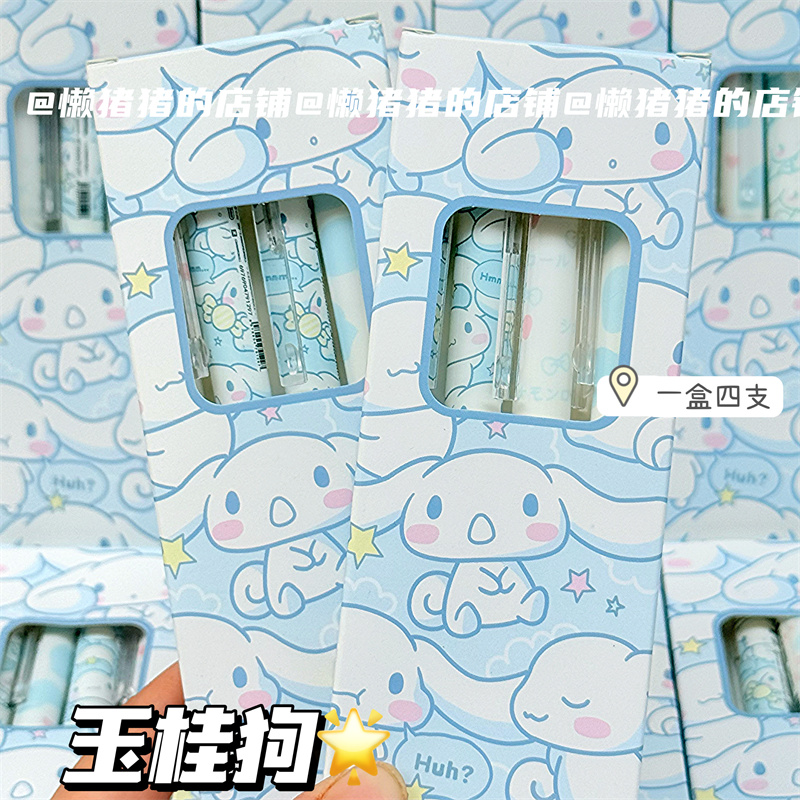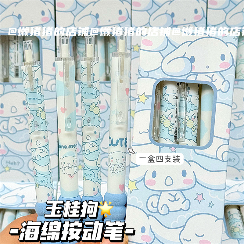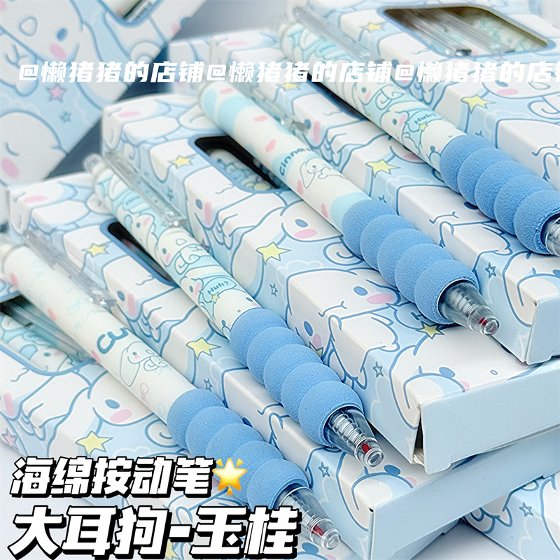 玉桂狗绵绵按动中性笔高颜值学生考试用0.5顺滑速干刷题碳素黑笔