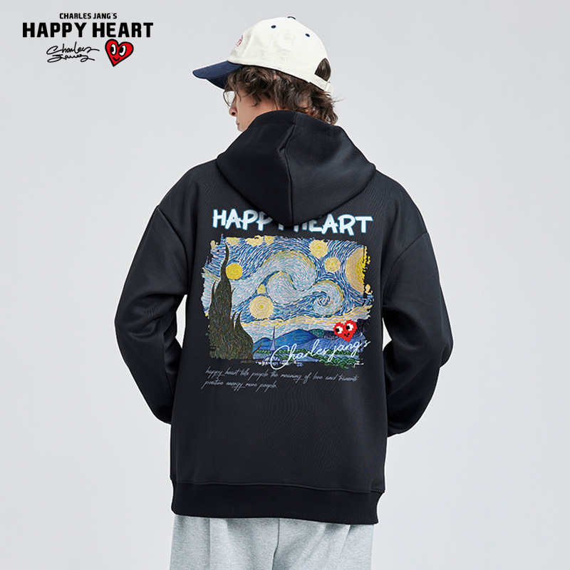 查尔斯桃心 卫衣男款春秋季连帽爱心油画2025新款潮牌套头外套