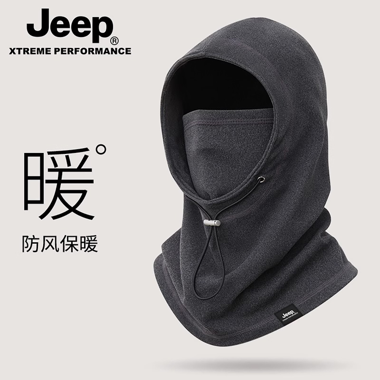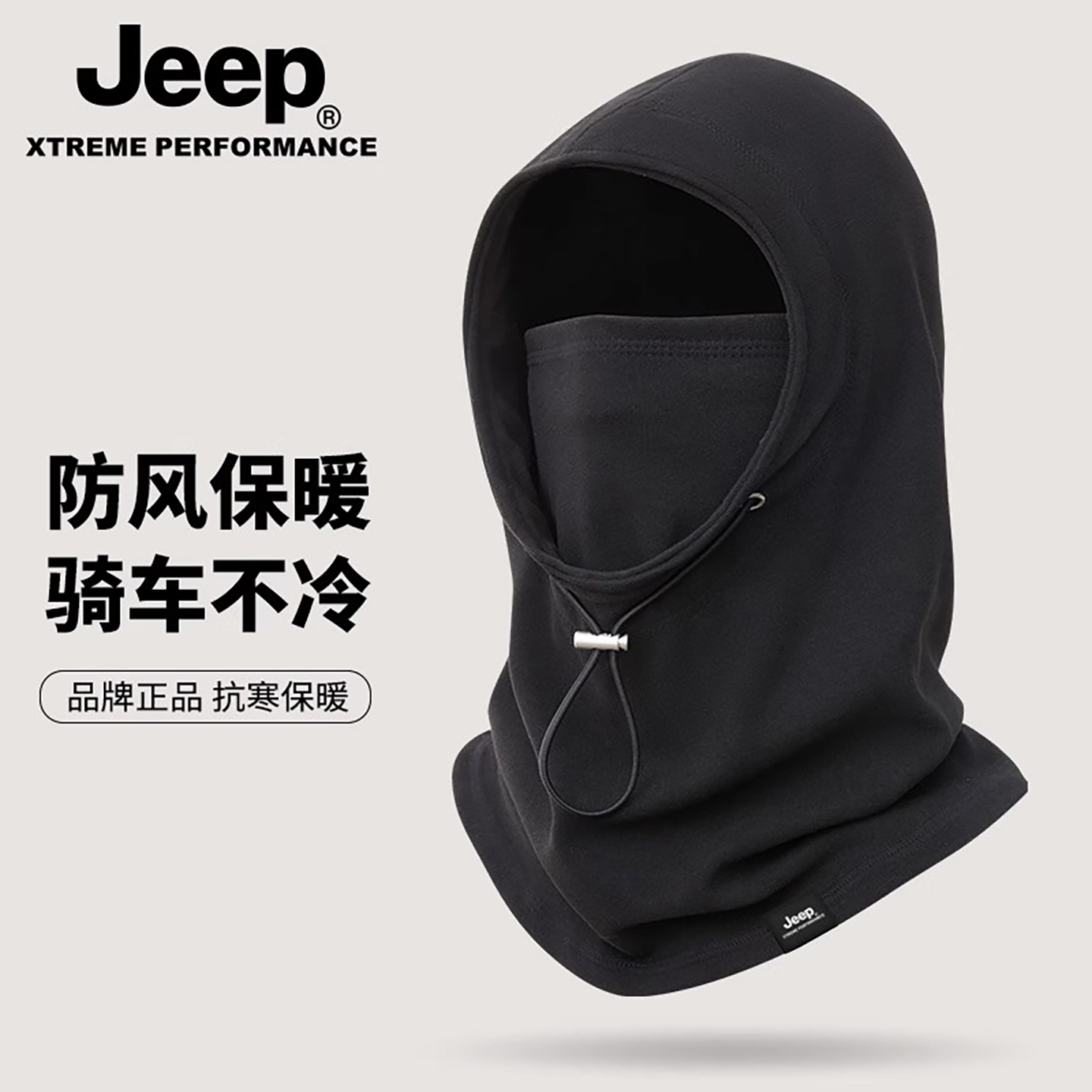 jeep吉普女士骑行面罩冬季德绒加厚保暖围脖一体帽子骑车防风帽女