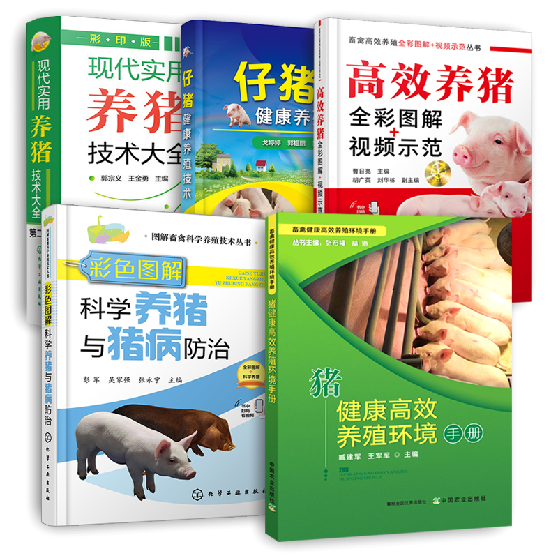 全5本 猪健康高效养殖环境手册+仔猪健康养殖技术 +现代实用养猪技术大全+彩色图解科学养猪与猪病防治 +高效养猪全彩图解视频示范