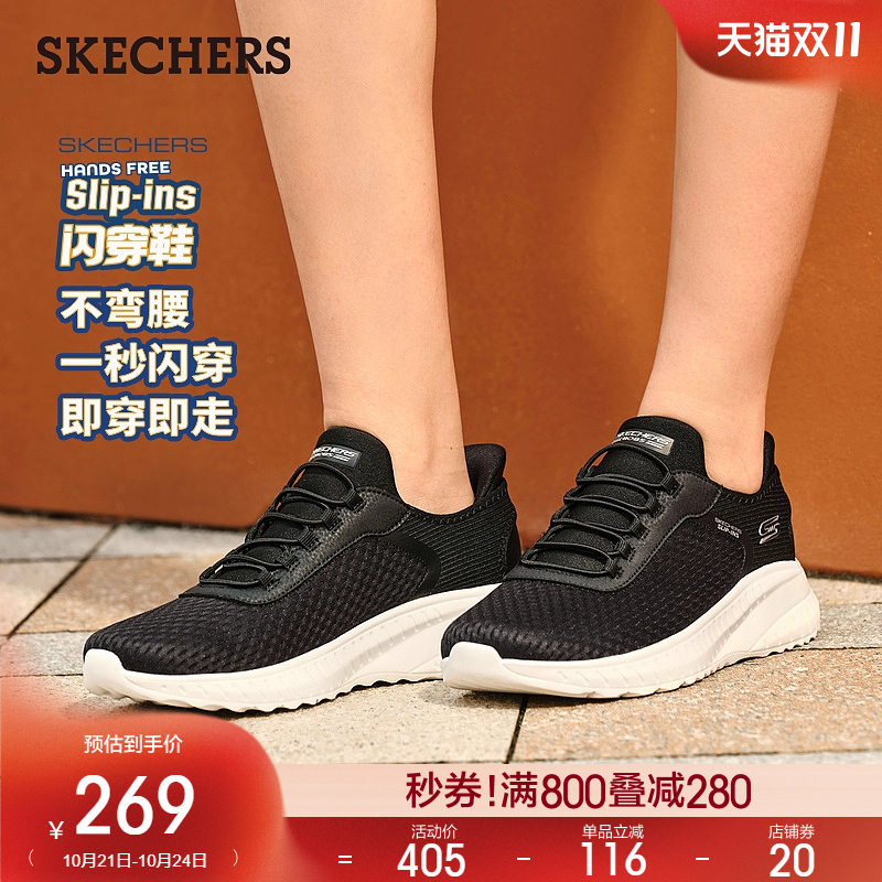Skechers斯凯奇闪穿鞋秋冬女鞋一脚蹬健步鞋舒适运动休闲鞋妈妈鞋