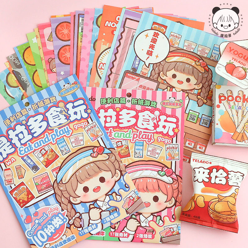 提拉多食玩零食饮料贴纸女孩儿童安静书可爱食物纸模解压益智玩具创意儿童手工场景粘贴玩具便利店食品剪纸