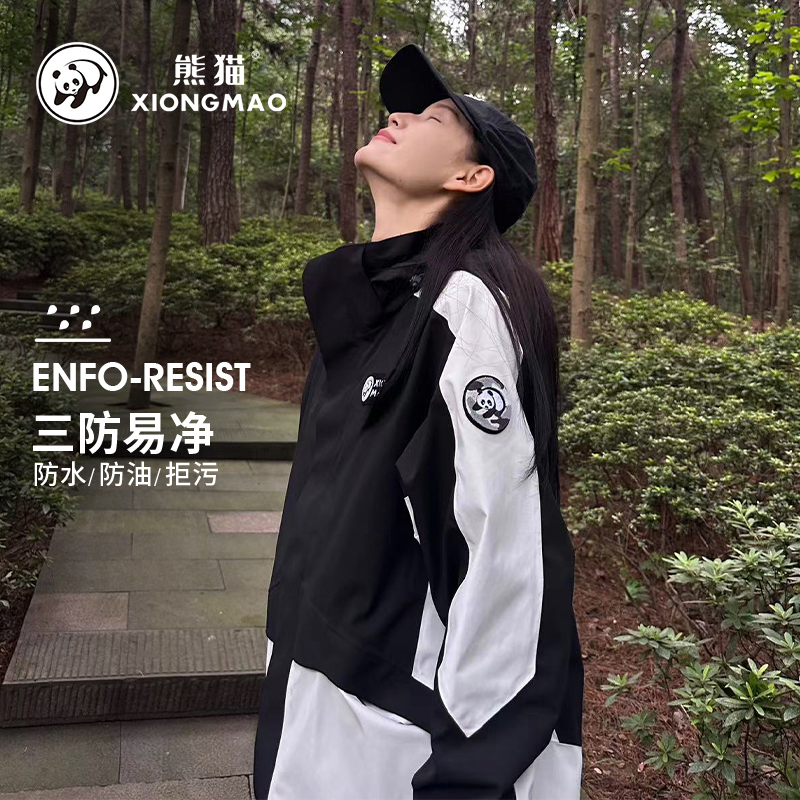 熊猫三防冲锋衣男女同款防油污防水防风秋冬三合一外套登山服