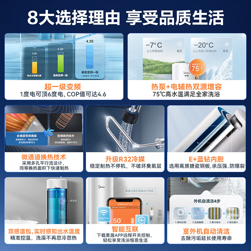 美的空气能热水器150l200升300升一级变频一体机家用商热泵热水器