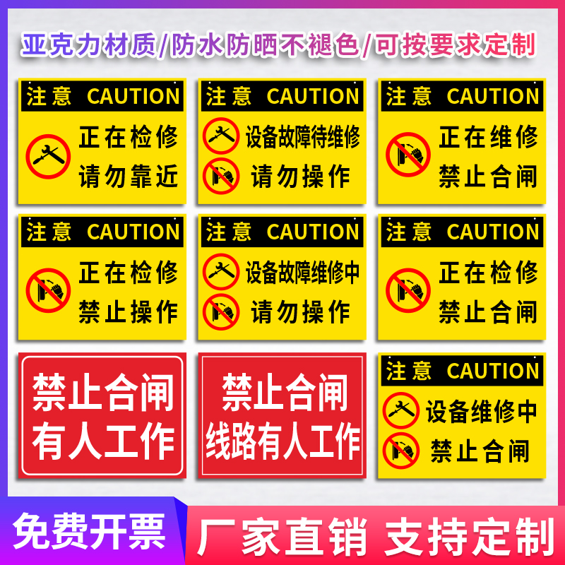 亚克力严禁合闸正在维修线路有人工作进行中禁止操作标识牌工厂机器设备运行状态管理卡请勿靠近有电危险操作