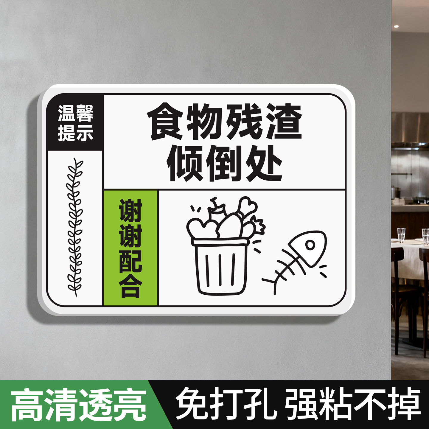 亚克力提示牌食堂自助餐具筷勺碗类回收处食物残渣倾倒处谢谢配合