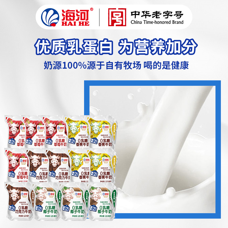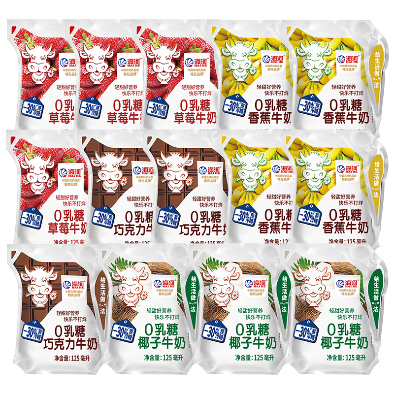 海河牛奶12袋4种口味0乳糖捏捏包儿童早餐奶草莓巧克力椰子风味奶