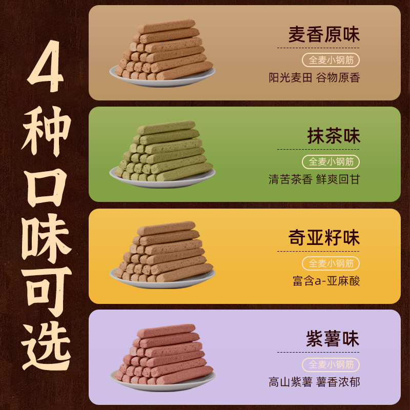 全麦小钢筋磨牙棒成人零食低脂蛋白棒卡热量代餐解馋超硬饼干减0
