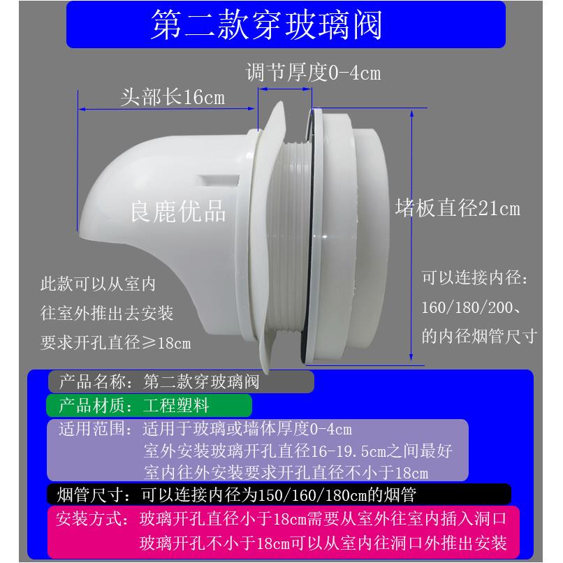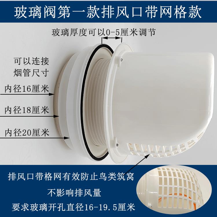 第二代加长款抽油烟机玻璃出风口排风口公共烟道止回阀厨房玻璃阀