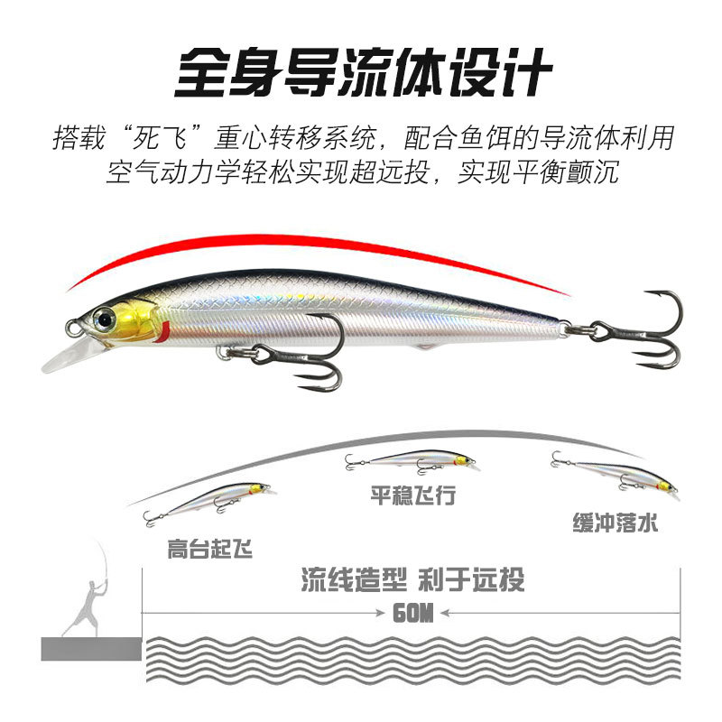 悬浮悬停米诺远投一抽路亚假饵海钓翘嘴鲈鱼银刃浮水缓沉沉水慢摇