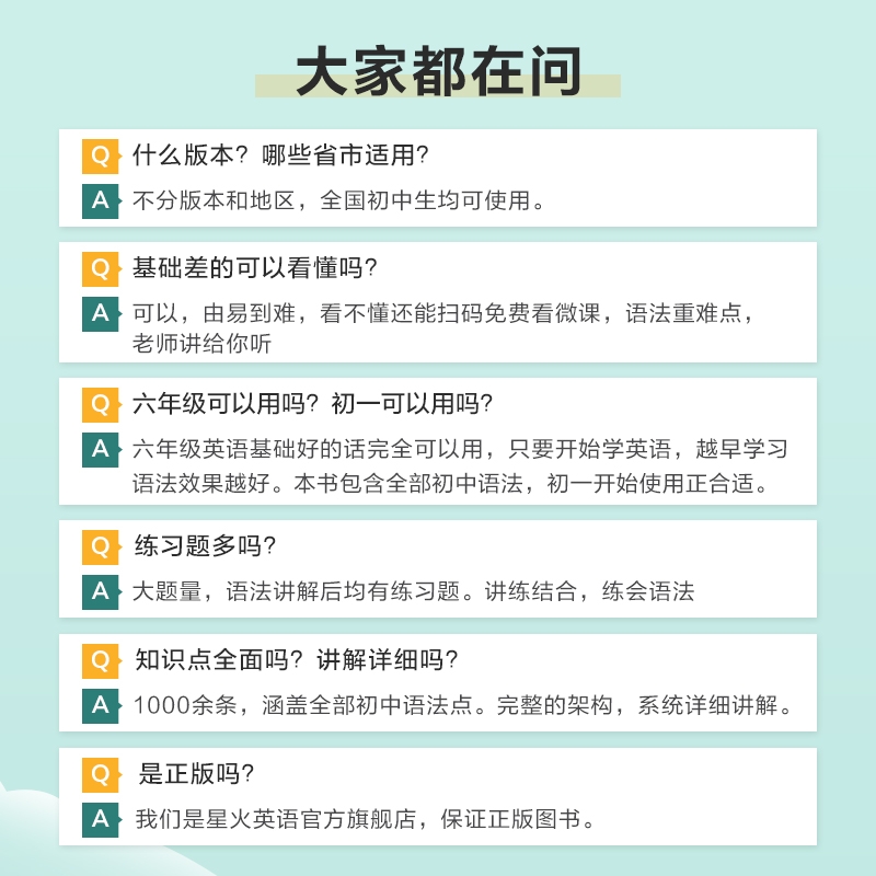 星火英语英语语法大全初中全解中考英语语法知识点初中初一初二初三英语语法专项训练习题七年级八九年级中考语法书视频课复习资料