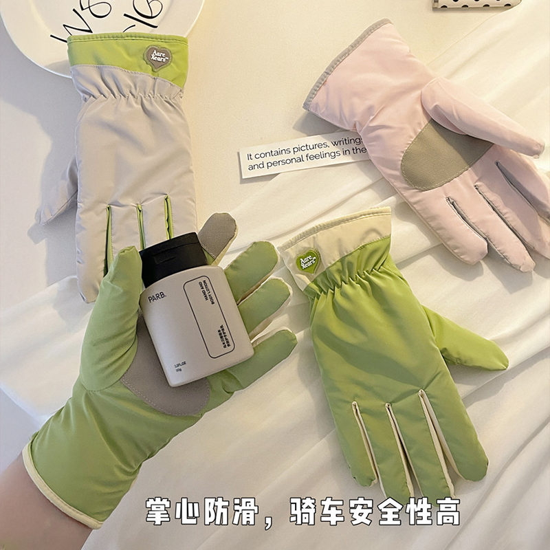 可爱骑行骑车手套女士冬季保暖防寒加绒加厚户外滑雪防风新款触屏