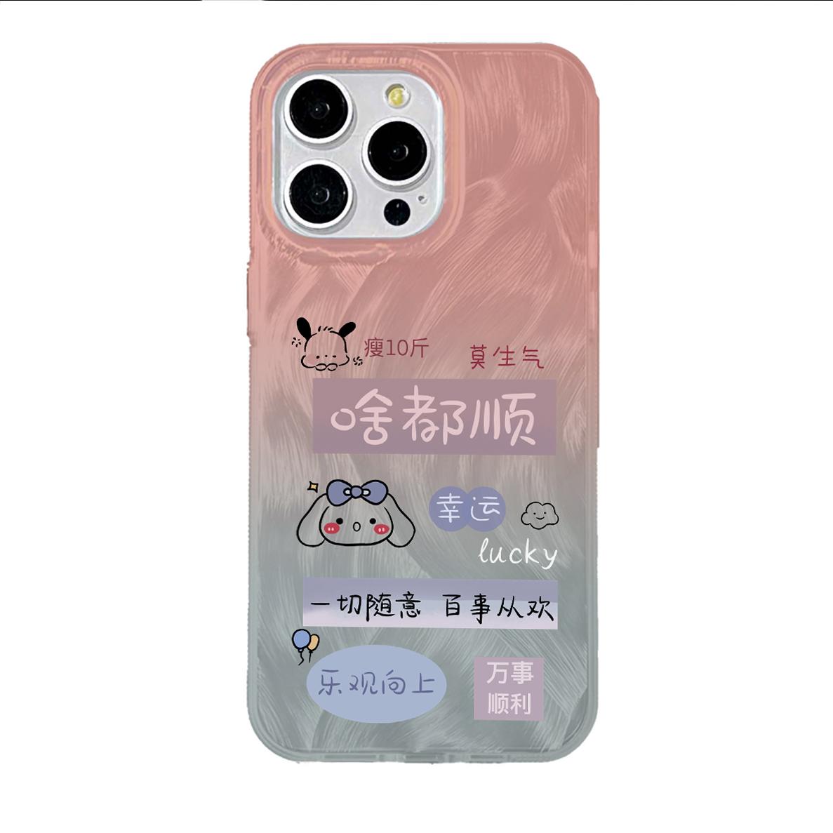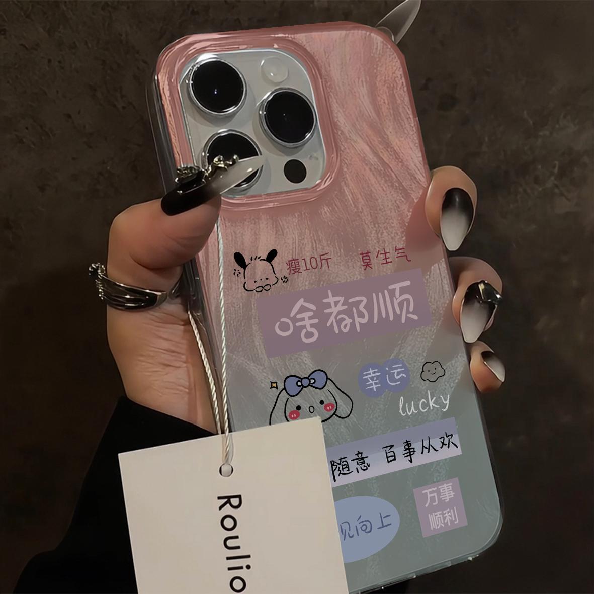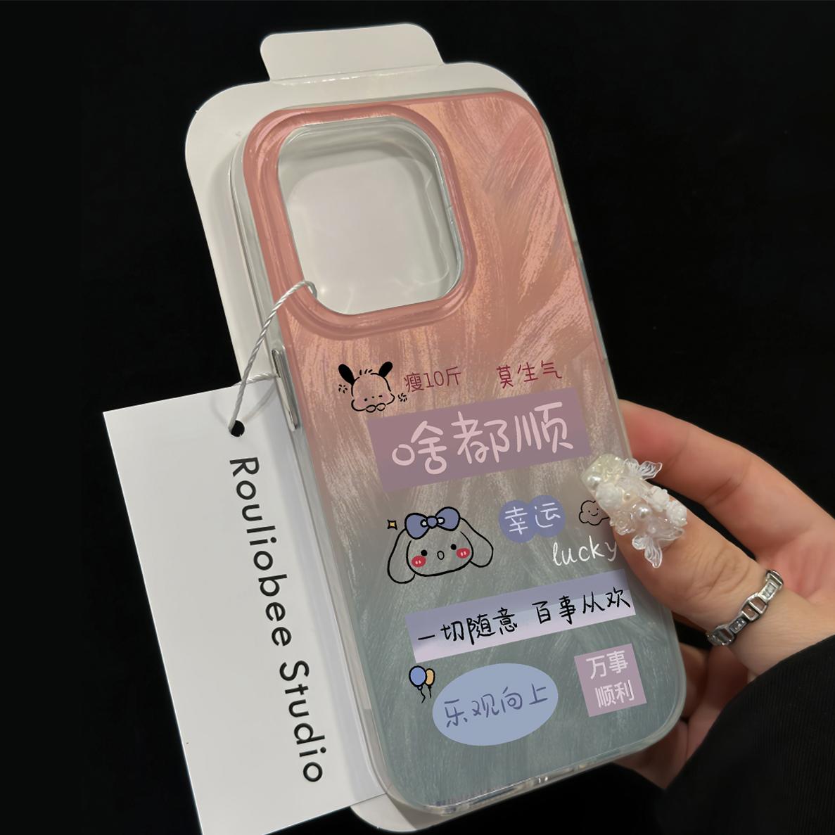 啥都顺小狗羽纱款苹果15promax手机壳适用iphone15乐观向上14高级感13pro/12网红十五plus防摔xsmax/xr保护套