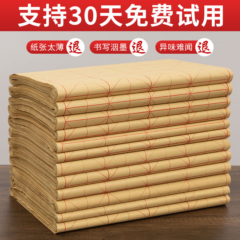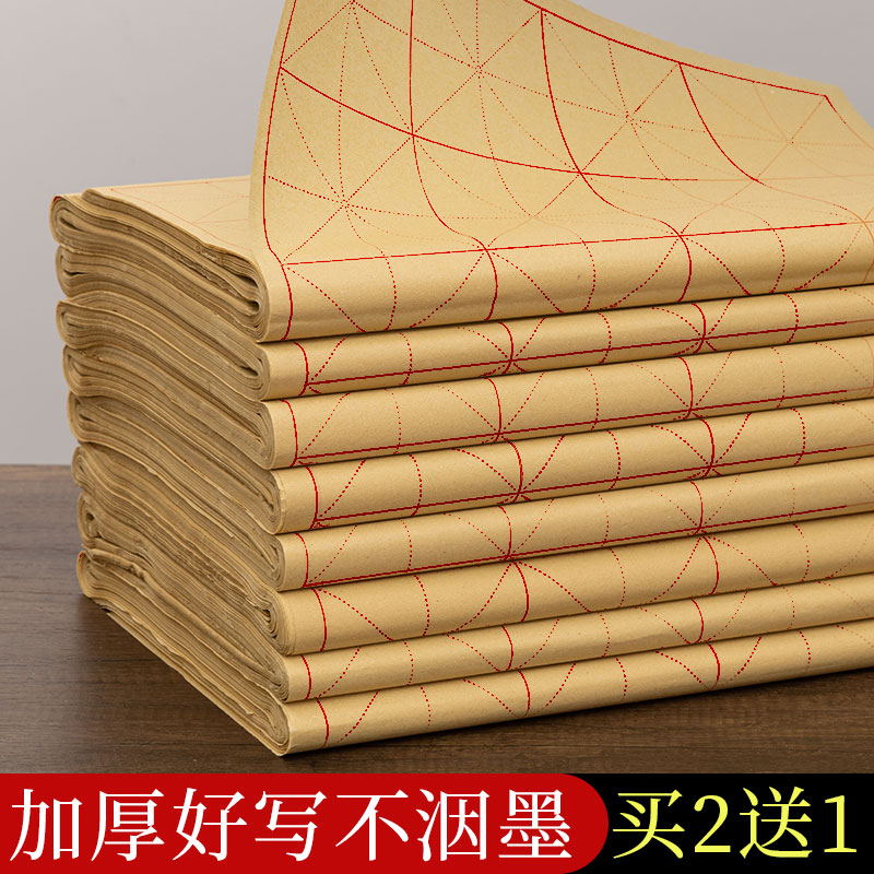 加厚米字格毛边纸书法专用纸练毛笔字宣纸用纸小学生毛笔练习纸带格子竹浆田字格元书纸草纸初学者9厘米28格