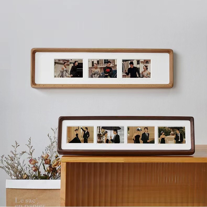 实木榫卯相框长条圆角斜边三联四联多张组合婚纱情侣桌面创意摆台