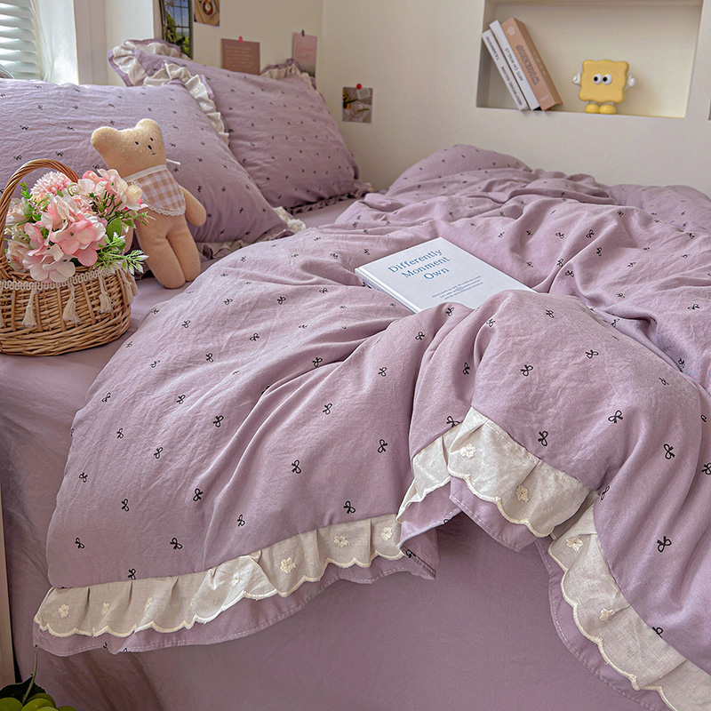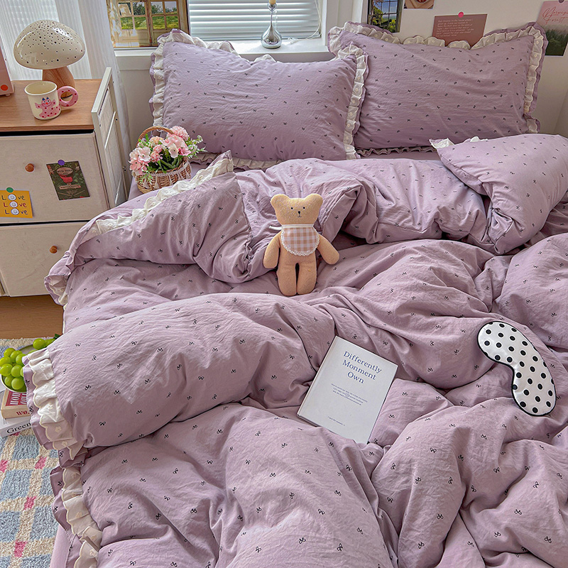 A类双层纱床上四件套纯棉全棉新款田园床单件被套被罩宿舍三件套4