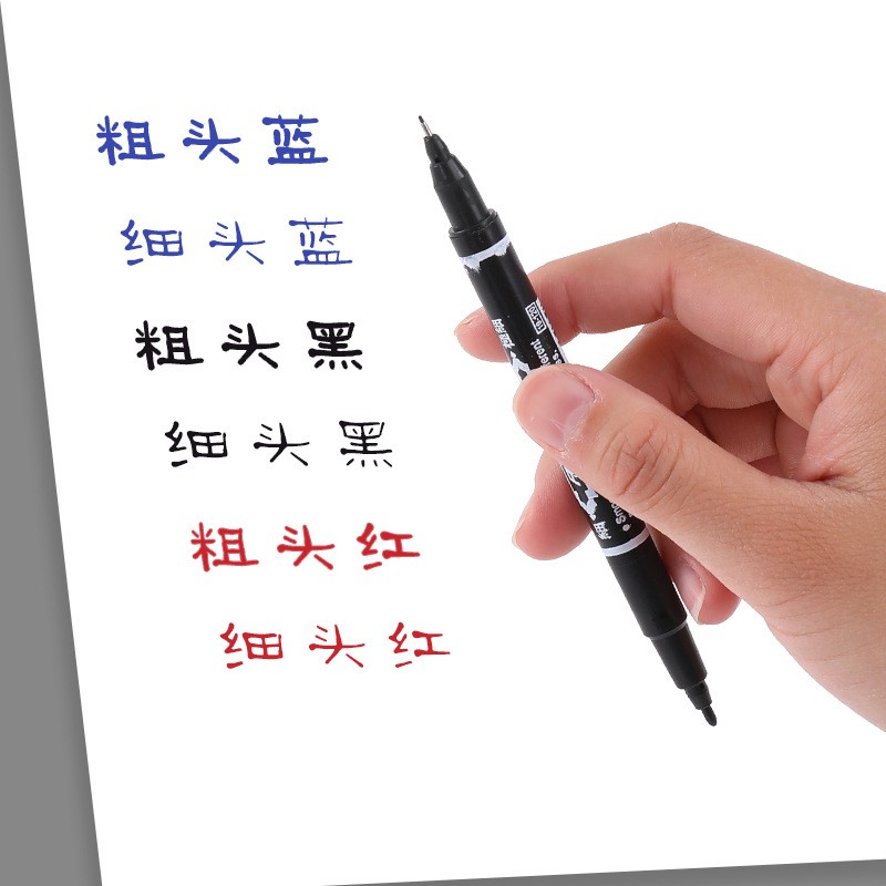 小双头记号笔勾线笔黑色油性速干防水防油不掉色大头马克笔工地美术专用儿童幼儿园小学生绘画描边粗细红蓝水