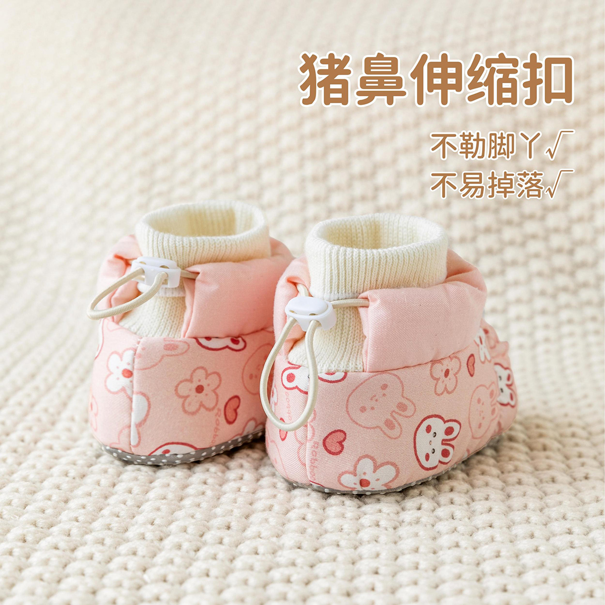 婧麒春秋婴儿鞋软底鞋袜防滑新生儿鞋子一体不掉跟0-12个月步前鞋