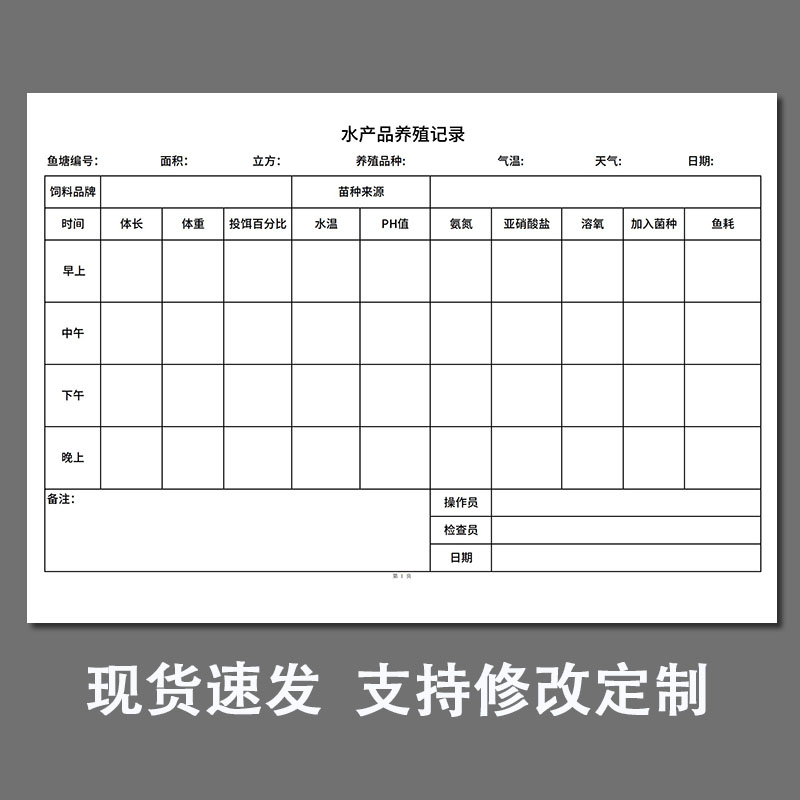 水产养殖记录本养殖场鱼塘水产品渔饲料投喂生产销进养渔病防治表