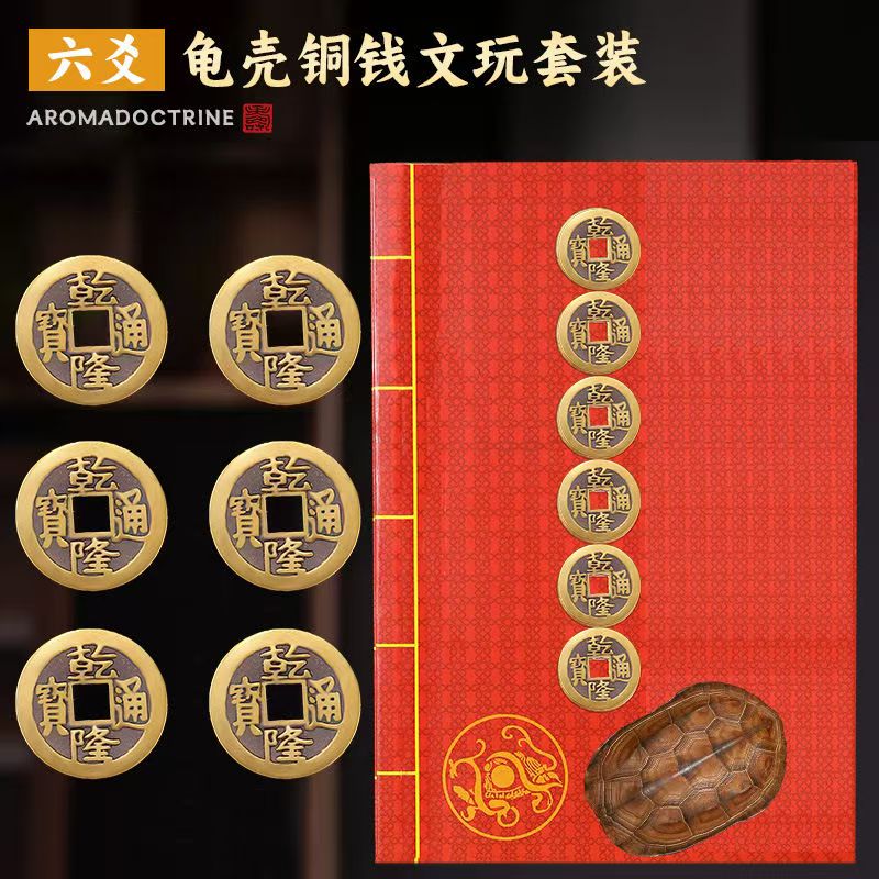 卦卜铜钱龟壳老式摇卦龟甲完整卦卜测摆件六爻工具一整套金钱摆件