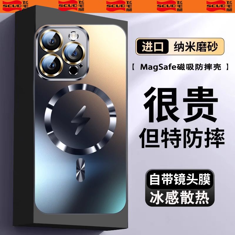 飞毛腿适用苹果16promax手机壳磨砂强磁吸15pro防摔软边14P保护套