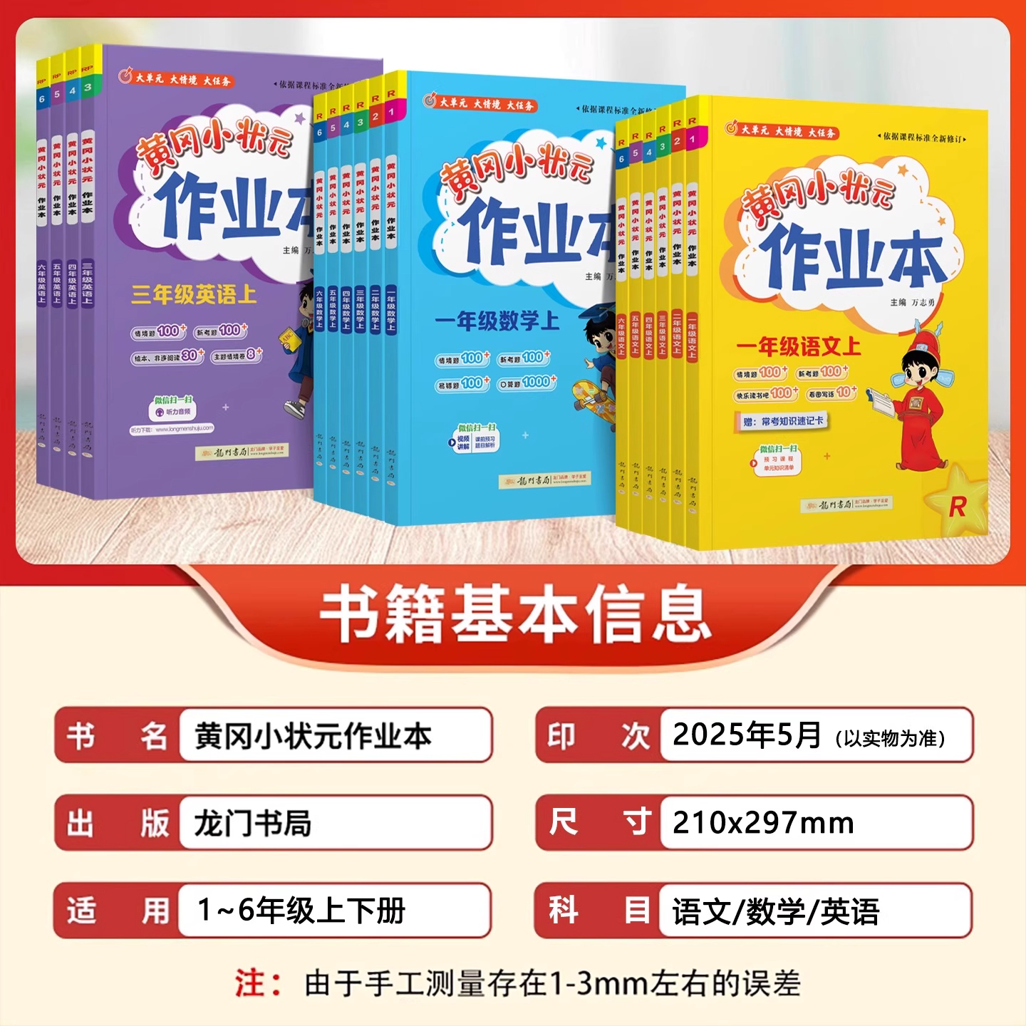 2025秋黄冈小状元作业本达标卷一二三四五六年级上册语文数学英语全套人教北师大版小学同步训练专项练习册作文口算黄岗天天练下册