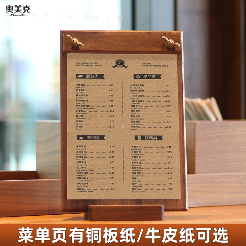 菜单夹菜单设计制作胡桃木垫板文件u夹菜单板咖啡菜单价展示牌立