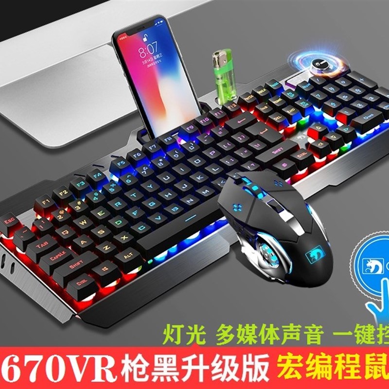 新盟曼巴狂蛇K670键盘金属悬浮机械手感 发光游戏有线USB键鼠套装