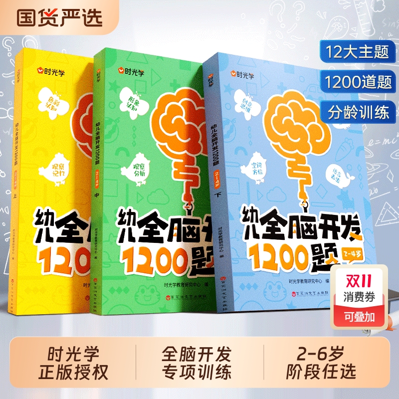 【时光学】幼儿全脑开发1200题上中下全三册儿童益智早教书幼儿专注力练习题册宝宝数学思维逻辑训练书籍幼儿园启蒙幼小衔接A