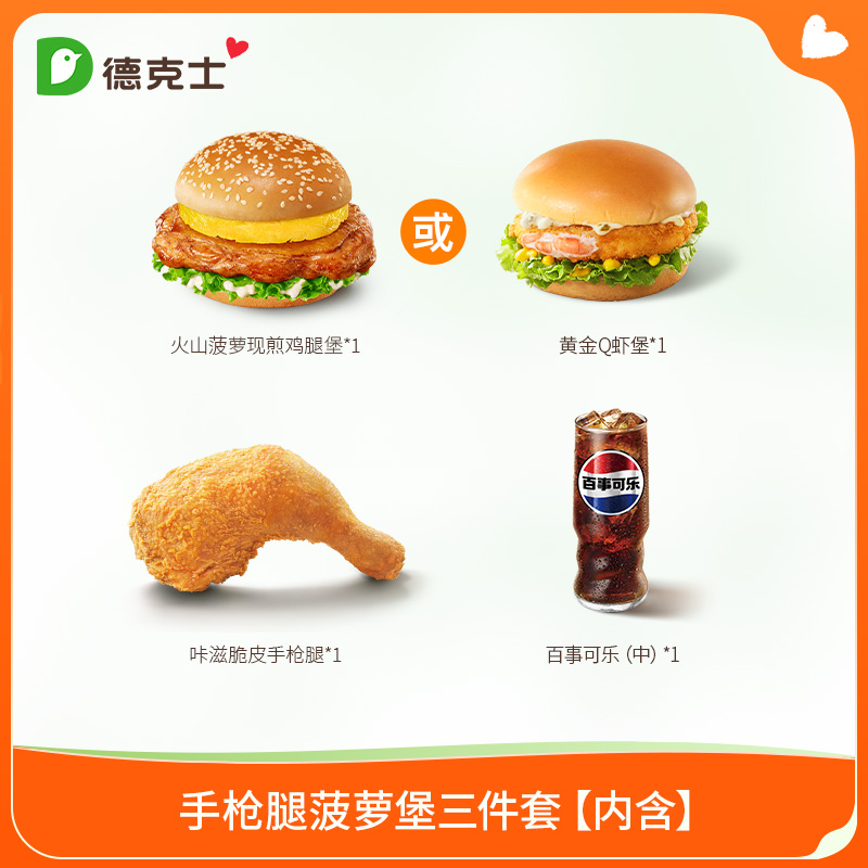 【百亿】德克士手枪腿菠萝堡三件套单券s【勿填陌生号码防诈骗】