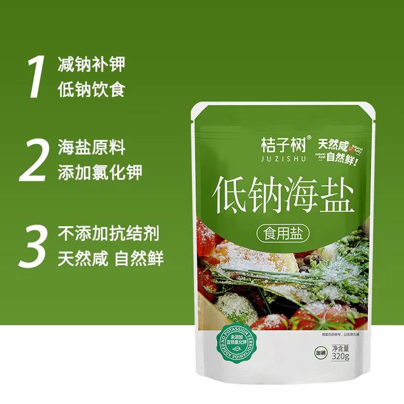 桔子树低钠海盐320g加碘食盐天然无添加家用食盐