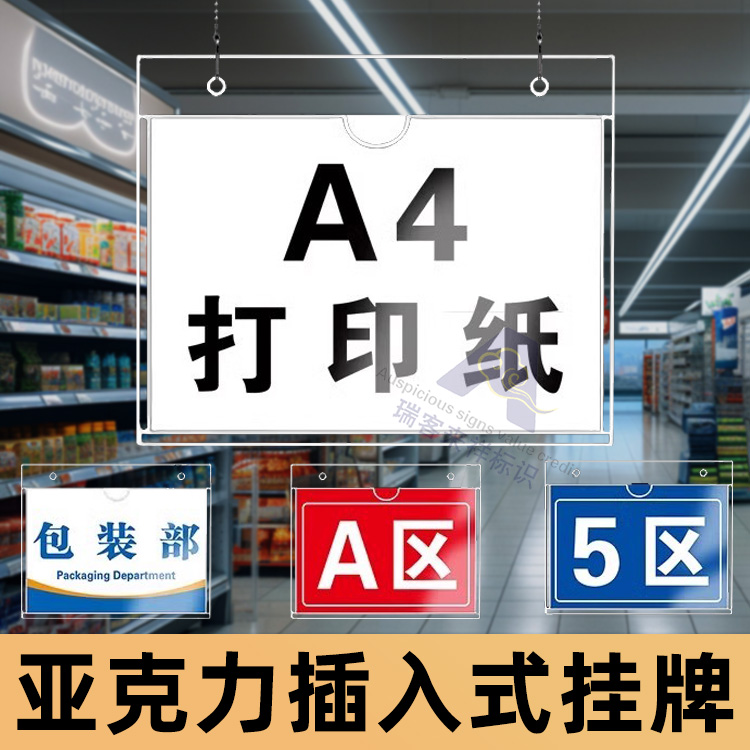 可更换广告牌亚克力悬挂吊牌户外a4仓库工厂车间区域划分区标识牌标示牌商场超市服装店价格提示展示挂牌定制