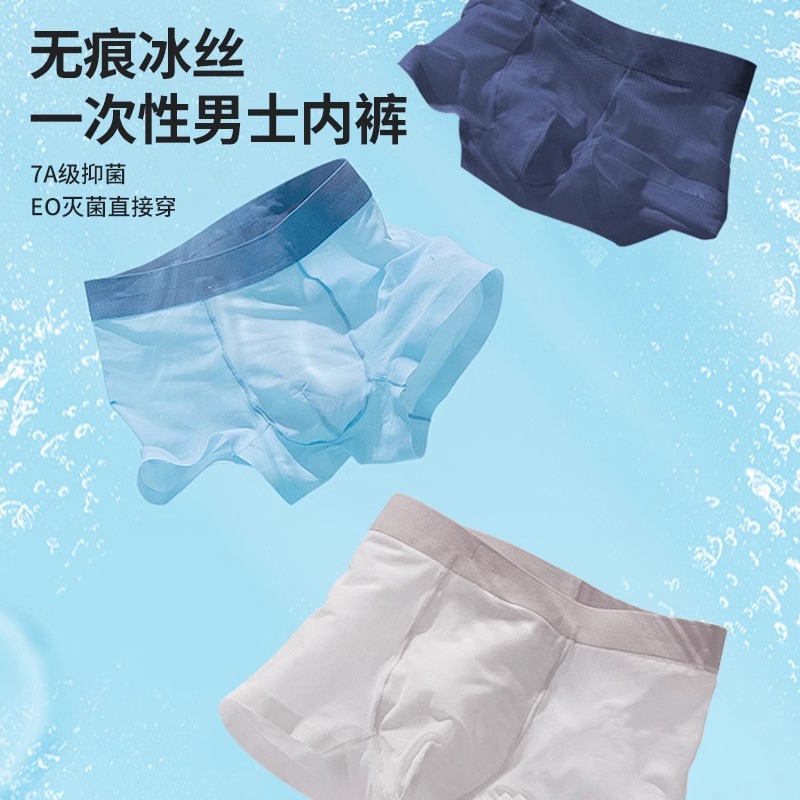 一次性冰丝内裤平角男士男款男式夏季纯棉无菌裆大码短裤旅行男生