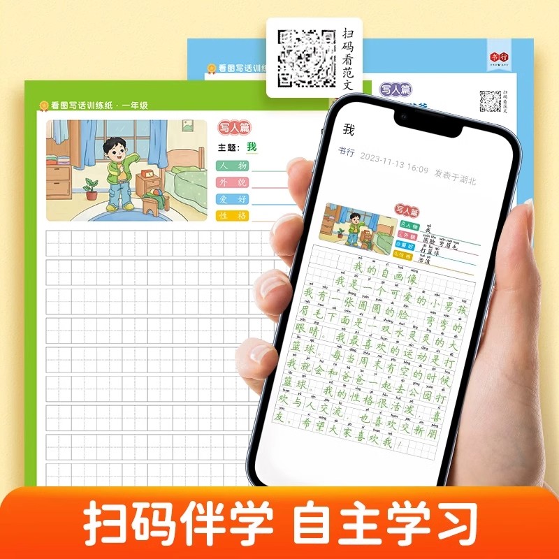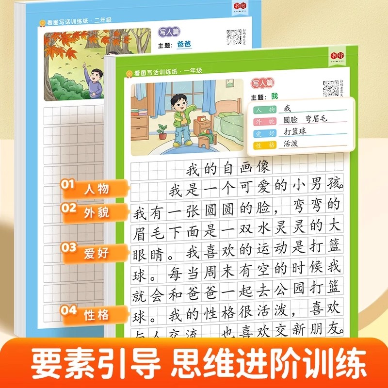 跟着课本学看图写话一二年级上下册小学生语文专项训练人教版启蒙提高儿童作文练字一练字帖一看就会扩句法写作文Y大人阅读思维