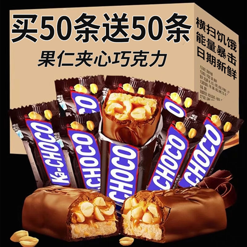 花生夹心巧克力果仁能力棒年货零食喜糖充饥糖果批发(代可可脂)