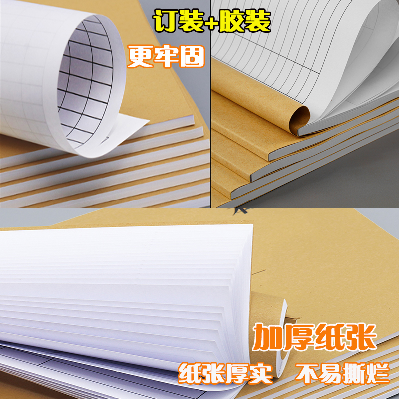复古牛皮纸笔记本超厚空白本子加厚白纸本草稿本学习可平摊高颜值本记事本日记本a4a5小方格写作本大学生初中