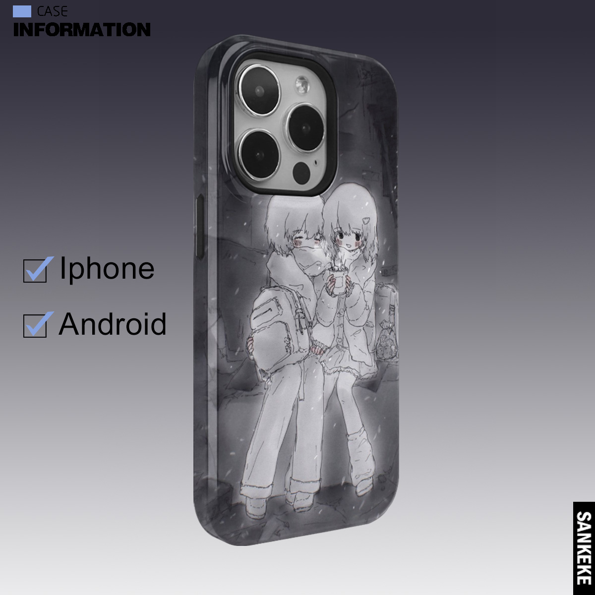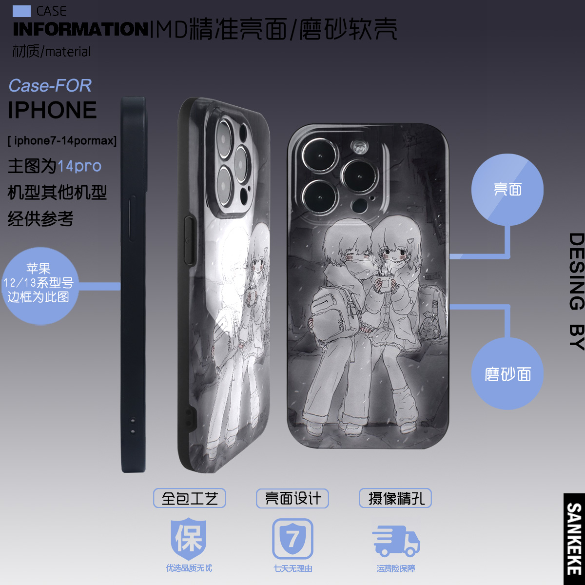 三壳壳原创寒冷冬天卡通插画手机壳适用苹果14pro/13p/12/11/XR/